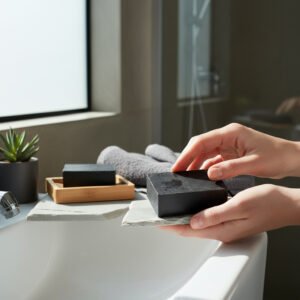 - Jabón dermolimpiador para cara y cuerpo con carbón activado y aloe vera, con cordón para fácil uso. 100% natural y vegano. Desmancha, desintoxica, exfolia, limpia e inhabilita las bacterias que causan el mal olor corporal. Presentación: Barra 180 g. Puedes comprarlo y/o hacer pedido con tu Distribuidor más cercano, encuéntralo: